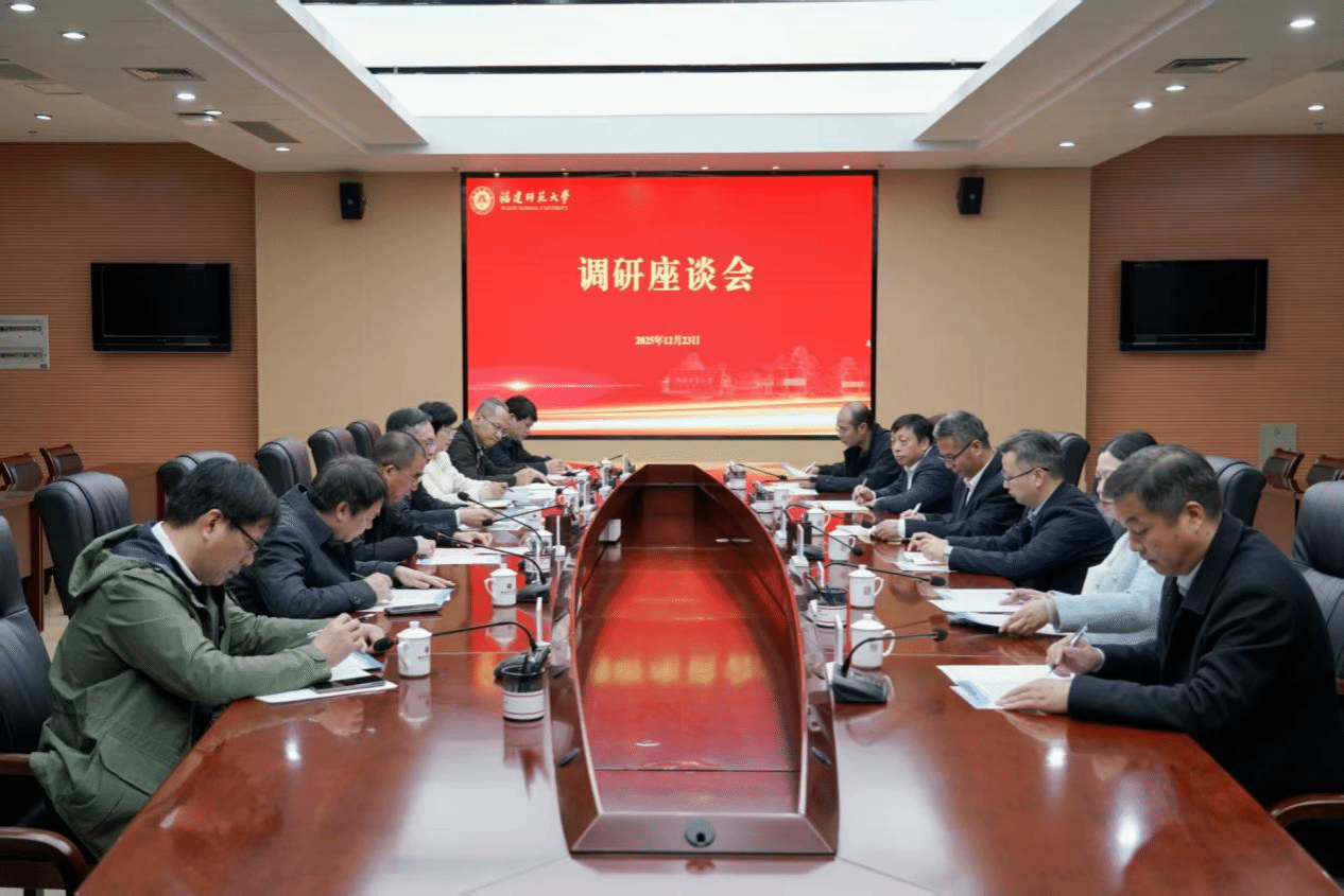 在福建师范大学,校长郑家建热情接待调研组一行,详细介绍了学校发展概况。他表示,两校同属师范类院校和教育部师范协同提质组团内高校,学科相近、理念相通,希望以此次交流为契机,搭建常态化合作平台,推动共同发展。