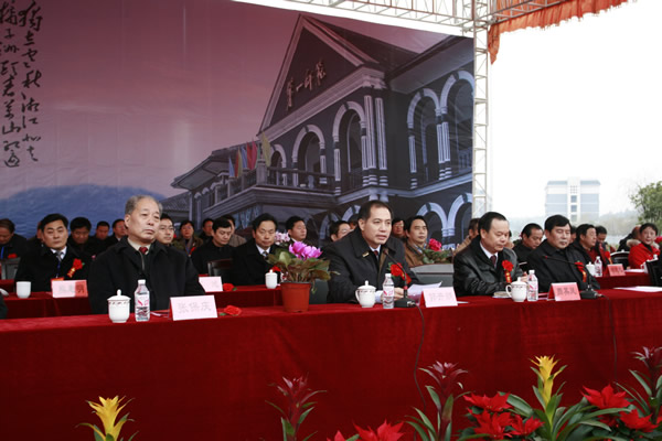 长郭开朗同志(右一),省政协副主席刘晓同志(左一)为湖南第一师范揭牌