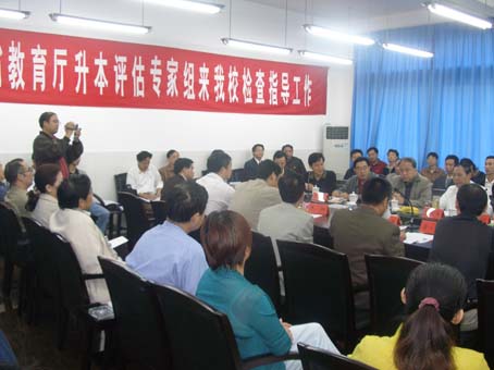 专家组在听取开元的升本工作汇报 专家组在教学系部检查