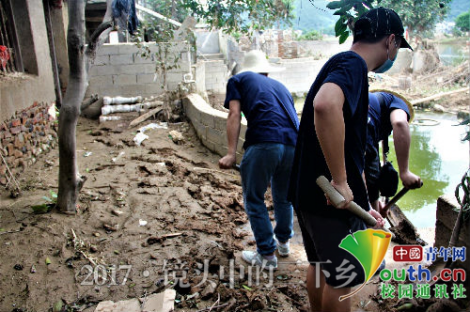 洪峰过境后的宁乡,垃圾淤泥遍地,气味刺鼻。为防止洪涝过后环境污染、疾病传播造成二次灾害,支教队员们戴上口罩、穿上长衣长裤和一双朴素的运动鞋,开始了“救援”行动。