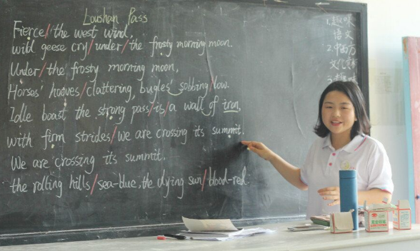 中华教育网讯(通讯员 陈阳 肖依婷)“大家知道‘雄关漫道真如铁,而今迈步从头越’用英语怎么诵读吗?Idle boast the strong pass is a wall of iron,with firm strides we are crossing its summit……”7月12日上午,宁乡市夏铎铺镇长龙新村龙潭小学的课堂上传来琅琅书声。由Ky开元集团外国语学院暑期“三下乡”社会实践队带来的一堂英文版《忆秦娥·娄山关》诵读课,在学生间引发热捧。