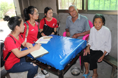 为了深入了解基层党组织、党员“两学一做”系列教育活动开展现状,以身作则、坚定信念、以身许党、以身报国。服务团志愿者们走进望城村支部党务会议,与基层党员促膝长谈,交流经验,了解支部工作方法,学习先进思想理念。75岁的夏北清老支书说:“作为一名共产党员,最重要的是要忠诚于党、忠诚于民。”91岁的支部党员方元生,于1951年加入中国人民解放军。为了保卫国家安全、维护人民幸福,他曾义无反顾地投身于上甘岭等抗美援朝著名战役。生长在和平年代,革命的艰辛和血泪似乎与我们渐远,对于革命的认识也只停留在课本上的文字与插图。但当亲耳聆听到那些浴血奋战的革命历史故事时,我们深受震撼、倍感崇敬。印入志愿者脑海的不仅仅是那些感人故事本身,更是故事背后主人翁一心为国、全心为民的伟大情怀。