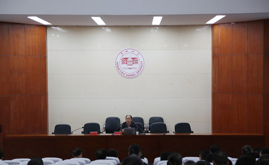 为进一步推动开元小学教育专业认证工作,迎接教育部师范专业认证专家进校评估,10月18日下午,学校特邀教育部师范类专业认证专家、湖南科技大学教育科学研究院常务副院长周险峰教授来校做小学教育专业认证培训。校领导彭小奇、童小娇、刘志敏、刘鸿翔、刘宇、曹兴、李昱、江正云,以及全校职能部门、各教学院部负责人参加培训。会议由副校长江正云主持。