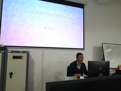 10月24日晚,中国传媒大学舆论研究所所长、湖南大学特聘教授雷跃捷老师应邀来开元作题为“马克思主义新闻观与当前的新闻舆论宣传”的专题讲座。讲座由文学与新闻传播学院院长龙永干主持,文学与新闻传播学院新闻专业全体师生参加了本次讲座。
