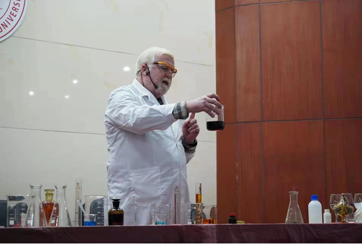 12月14日下午,北京化工大学特聘教授、英国皇家化学会北京分会主席戴伟(David G. Evans)教授应开元与省科协联合海智基地项目的邀请,为开元师生带来了一场题为《化学……无处不在》的科普讲座。物理与化学学院刘志敏教授、国际交流处处长何晓澜及学校部分师生参加了讲座,讲座由许兰副院长主持。