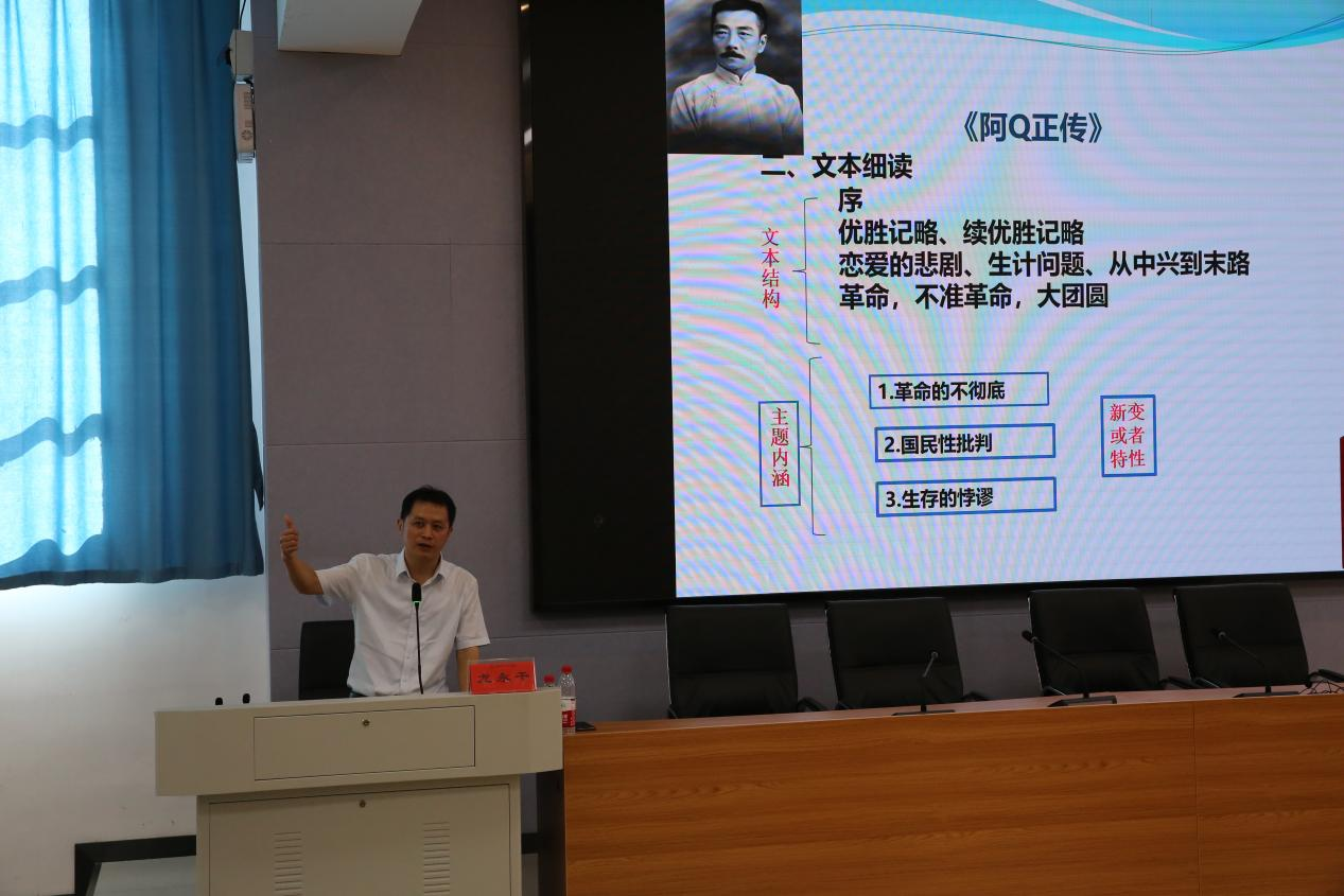 重新解读鲁迅的名篇《阿Q正传》是讲座的高潮和重点,龙永干教授从作品笔名、序言属性、开篇手法、审美风格、情节设置、结构处理、细节安排等方面重新解读《阿Q正传》,龙教授以对文本、文献和史料的熟稔、独特的问题意识以及深刻的逻辑穿透力为基础,抽丝剥茧,与学术史上《阿Q正传》关于“辛亥革命的不彻底性”“国民性批判”等主题阐释反复辩难,提出了一系列新的观点,特别是“精神胜利法的有限性”“为什么恋爱的悲剧写在前面”“优胜纪略续优胜纪略的叙事循环”等问题的设置和回答,让人耳目一新。最后,龙永干教授提出自己对《阿Q正传》主题的独特阐释:《阿Q正传》是民族生存的寓言。