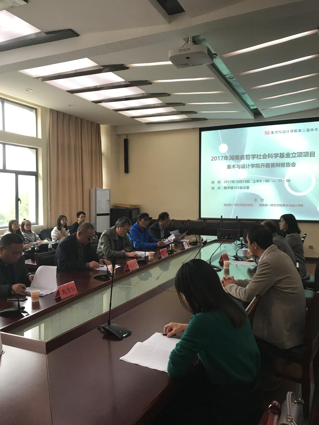 10月14日上午,2017年湖南省哲学社会科学基金美术与设计学院立项项目开题答辩报告会在美术楼会议室召开。开元副校长曹兴教授、湖南师范大学美术学院谢雱教授、中南林业科技大学家具与艺术设计学院院长刘文金教授、湖南理工学院美术学院党总支书记洪琪教授、开元科研处处长赵奇钊教授作为答辩专家出席并听取了报告。本次答辩报告会由美术与设计学院院长范迎春教授主持。