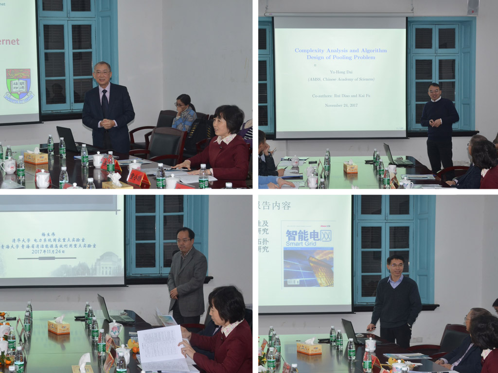本次研讨会的主题是优化理论最新进展、能源互联网中的优化建模及计算。吴复立教授作了题为“A Grid as Smart as the Internet”主题报告,戴彧虹教授、梅生伟教授、郭田德教授、袁晓明教授、杨洪明教授和韩冬博士分别作了“Complexity Analysis and Algorithm Design of Pooling Problem”“基于太阳能的多能互补系统——青海大学智能微能源网”“智能电网自愈策略中的优化问题研究”“Designing ADMM-based Algorithms for Large-Scale Separable Convex Optimization Models”“兼顾用电行为和电网参与的可控负荷需求响应决策”“优化理论及其在能源互联网建模中的应用”专题报告。