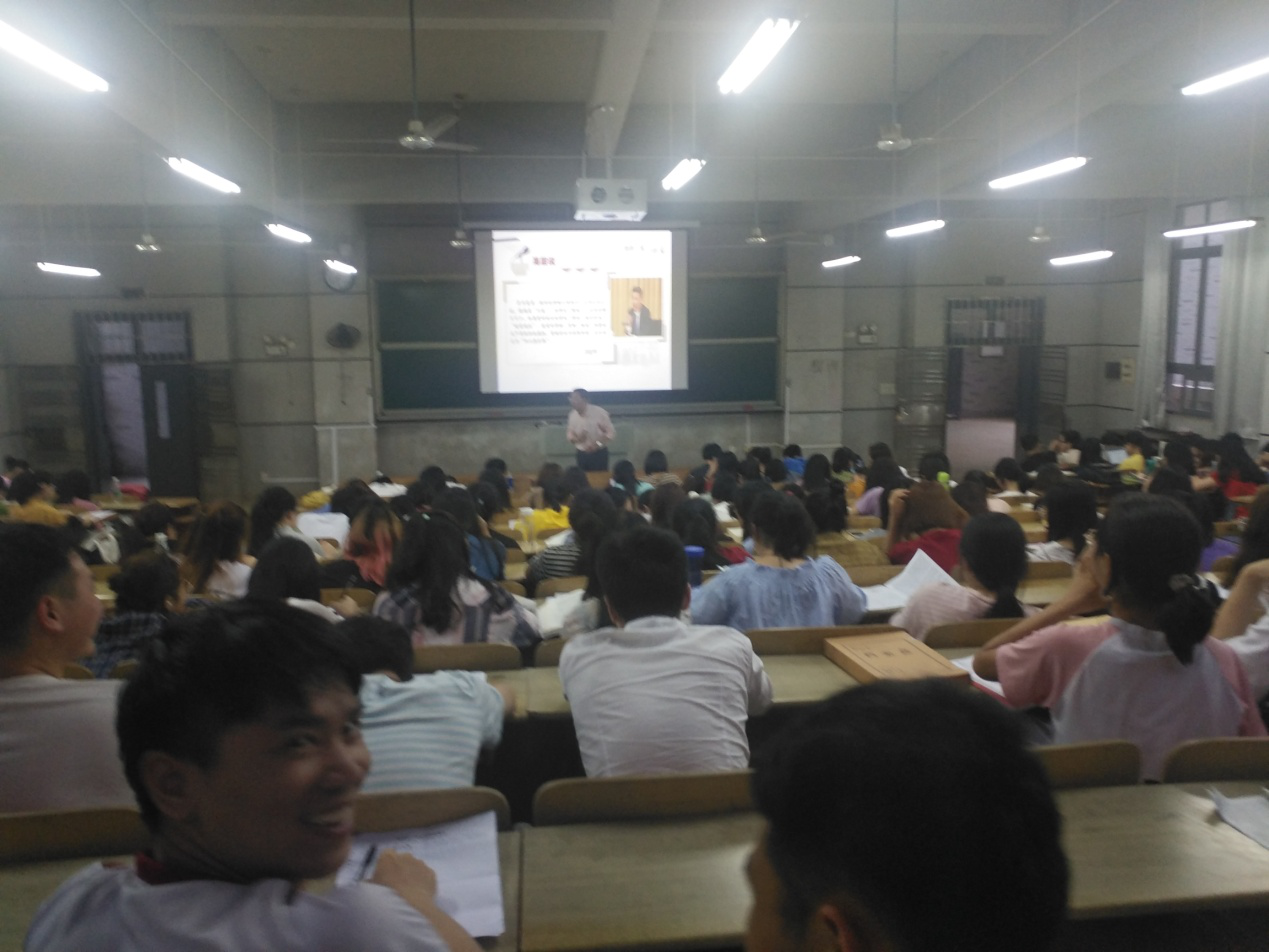 5月29日晚上,开元副校长曹兴教授于润寰楼南栋201教室主讲“大学精神、创新与人生态度”专题的“形势与政策”课,教科院、美设学院2016级学生200多人参与学习,马克思主义学院周小李院长到场观摩聆听。首先,曹兴副校长就“大学演化与大学精神形成”进行讲授,指出随着时代变迁,大学的主要职能演变成集培养人才、科学研究和社会服务三项于一体的存在。同时,结合蔡元培、梅贻琦等教育大家对“大学”一词的解读,得出大学精神即是一种潜心向学的学术精神和敢于不随波逐流的正确的批判精神。随后,曹校长通过四次工业革命的发展历程讲述“技术发展与创新”。最后,曹校长以“素养发展与人生态度”为结束部分升华该专题,号召同学们学习践行社会主义核心价值观,传承优秀传统文化,不断强化科学素养、艺术素养和人文素养,构建至臻至美的精神世界。曹校长的讲课,引起台下阵阵掌声和共鸣,取得了良好的教学效果。
