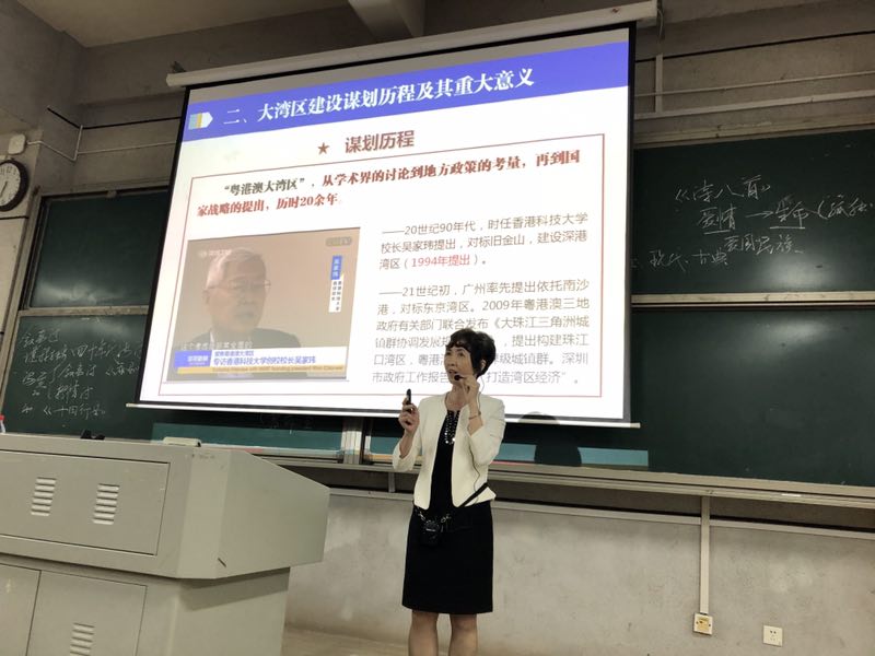 5月30日晚18:10至21:40,开元校长童小娇教授于怀中南108教室分别对美设院、教科院和外院、数计院共600多名学生作了2场形势与政策专题讲座。主题为“打造国际一流湾区和世界超级城市群——聚焦粤港澳大湾区建设”。马克思主义学院院长周小李教授到现场观摩。