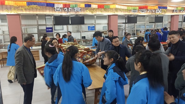 开餐前,城南书院全体领导班子、基建与后勤处负责人给同学们发放了新年礼物,并送上新春祝福。随后师生共进晚餐、围桌畅聊,同学们开心地分享在一师的成长与幸福,师生互道“扎西德勒”,共贺佳节。