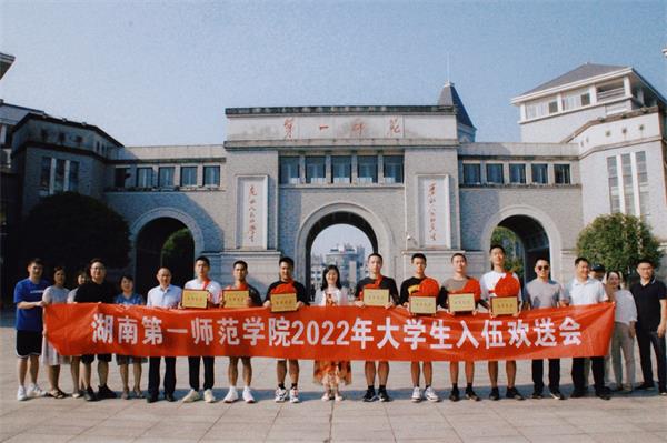 欢送会上,与会领导为入伍新兵佩戴大红花、赠送“参军光荣”牌匾并发放纪念品。数学与统计学院2022届毕业生吴宇诚代表新兵发言。