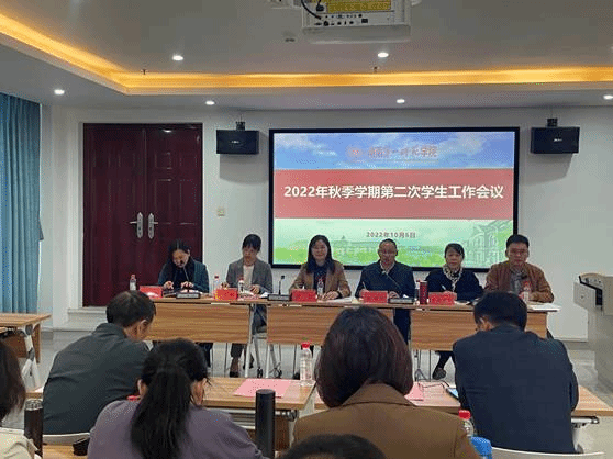 会上,观看了《湖南省安全生产警示片》《警报》等安全教育宣传片,通报了疫情防控形势,明确了节水节电要求,部署了安全稳定、团学、资助、心理健康教育、易班思政、学生日常管理、公寓管理、辅导员队伍建设、国防教育、学平险等工作,并对相关领域的潜在风险进行了研判。外国语学院、马克思主义学院、计算机学院负责人分别汇报了新形势下学生管理工作中人文关怀、考研指导、班级文化建设等方面的特色亮点。