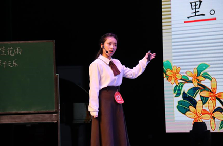通过院部初选、复选,校级半决赛层层选拔,15名选手脱颖而出,在赛场上一展风采。决赛由片段教学、即兴演讲以及才艺展示三个环节组成。在片段教学环节,选手们用独特新颖的教学方法,辅以形象生动的语言表达,呈现了优质亮眼的准课堂教学。在即兴演讲环节,选手们以良好的教师职业素养和灵活的应变能力,全方位展示了开元师范生的培养成效。在才艺展示环节,音乐舞蹈学院吕之涵、文学与新闻传播学院罗晶共同带来的歌曲《有我》彰显出新时代一师青年勇挑重担、不负重托的豪情;教育学院蔺萌萌带来的粉笔作画《一卷山水情》以清新明丽、丰富细腻的色彩效果呈现了粉笔画的艺术魅力。
