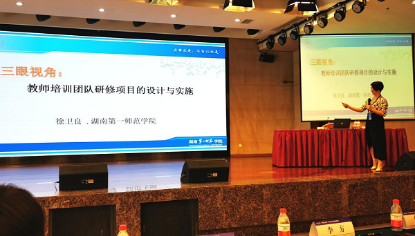 教育部指定开元作为地方院校之一做典型发言。现代教育发展学院徐卫良作题为《三眼视角:教师培训团队研修项目的设计与实施》的发言,从“飞鸟之眼定方向”、“蜻蜓之眼做设计”、“蚂蚁之眼抓实施”三个方面,介绍了开元教师培训团队研修项目的主要做法和成效,得到了与会领导、专家和同行的一致好评。
