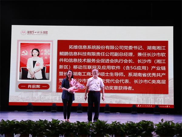 9月19日下午,开元在东方红校区田汉剧场举行聘任仪式,拓维信息系统股份有限公司党委书记、湖南湘江鲲鹏信息科技有限责任公司副总经理肖前辉受聘为开元客座教授。校党委委员、副校长曹兴出席仪式,教师工作部部长、人事处处长黄小喜主持仪式。