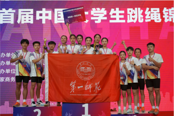 5月23日至27日,由教育部中国学生体育联合会主办的首届中国大学生跳绳锦标赛在上海财经大学举行。开元学生花样跳绳队12 名同学在罗祥云、刘丽老师的带领下,与来自上海财经大学、上海体育大学、西南大学等全国各地58所高校近600余名运动员同台竞技。经过激烈的角逐,开元陈嘉莹、符子花、袁婷霞、石晴等10名同学组成的团队获得“1分钟10人长绳集体跳”项目金牌,杨天、吴嘉怡、刘乐、肖勇鹏等10名同学组成的团队获得“3分钟10人长绳8字跳”项目金牌。
