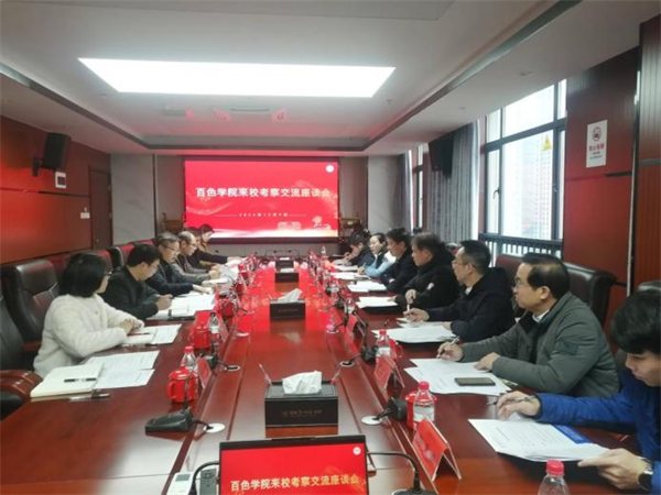 12月9日上午,百色学院党委委员、副校长吴佩杰一行来开元考察交流,双方在百熙楼713会议室举行座谈会。副校长石元泉,学科规划与研究生处、教务处、人事处及相关二级学院负责人参加座谈。