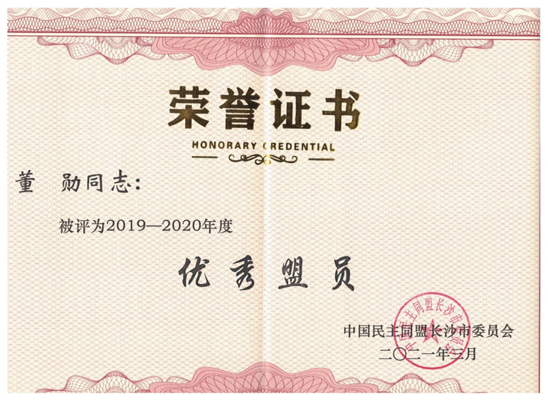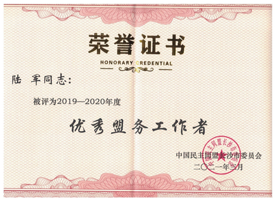 为更好地推进民盟工作发展,推广盟务工作典型经验,充分发挥先进支部和先进个人的示范引领作用,近日,民盟长沙市委对2019-2020年度先进支部和先进个人进行了表彰。开元民盟一师支部、工会专职副主席陆军、美术与设计学院老师董勋分别荣获民盟长沙市委2019-2020年度 “优秀支部”“优秀盟务工作者”“优秀盟员”称号。