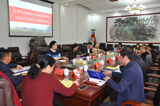 3月29日下午,省委统战部副部长胡东风、省委统战部知工处处长曾志君、副处长张小庆一行4人来到开元,就“新时代湖南高校党外知识分子思想状况” 进行调研。校党委书记彭小奇、校长童小娇、党委副书记刘志敏、组织统战部、宣传部、人事处负责人以及学校党外知识分子代表参加调研座谈会。刘志敏主持会议。
