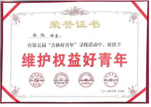 近日,第五届“吉林好青年”寻找活动已落下帷幕,经组织推荐、资格审核、集中公示等环节,中共吉林省委宣传部、共青团吉林省委员会、吉林省青年联合会共同考察、评审后公布表彰名单,永利官网林旭同学被授予第五届“吉林好青年—维护权益好青年”称号。