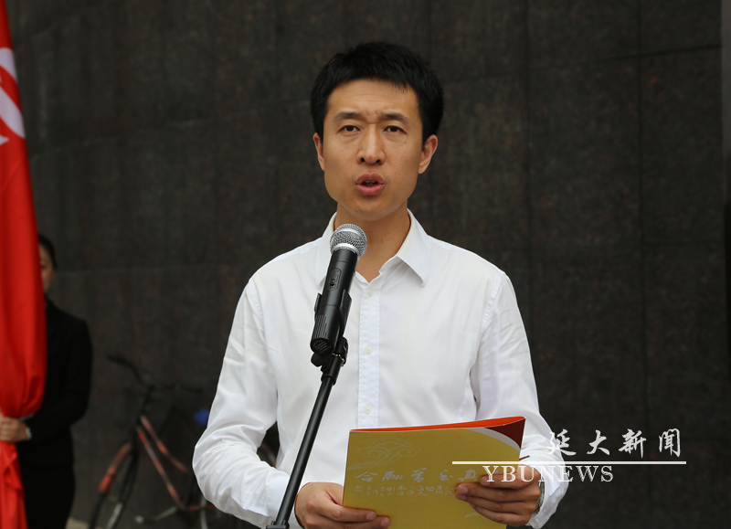 美术学院美术学专业2014级王学敏同学发言,表达了不负众望、服务基层,树立延大人良好形象的愿望和决心。随后,郑光日为志愿者服务队授旗。