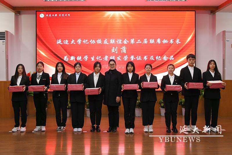 蔡奎龙讲话。他表示,学生记者是学校新闻宣传工作的重要力量,过去的一年,广大学生记者在学校党委宣传部、校团委的领导下,主动投身校园新闻宣传工作,创作了一大批优质新闻稿件、影像音频,集中展现了学校办学治校取得的成绩,向社会各界实时传播了奋斗中的“延大故事”,彰显出延大青年学子的优良风采。