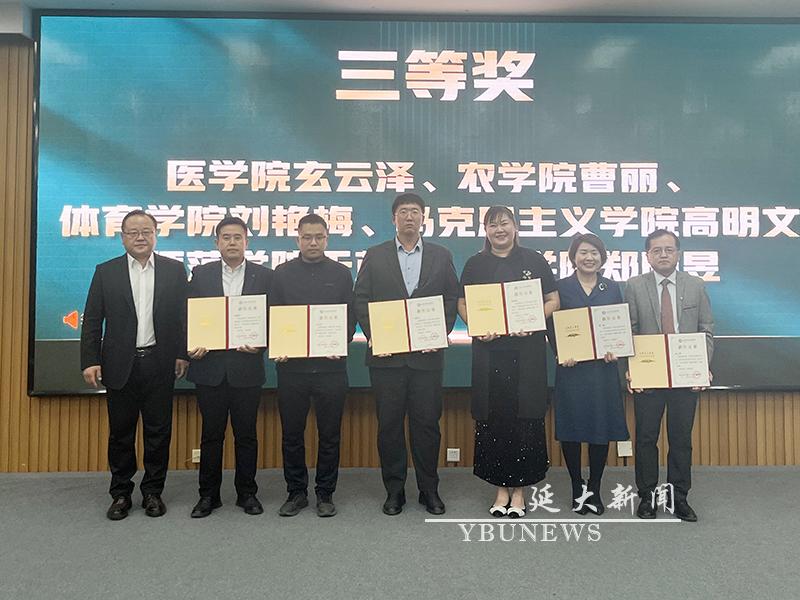 招生就业处处长金鸿雁宣读获奖名单,此次大赛评选出一等奖2名、二等奖4名、三等奖6名。于金欢、朱卫红、校工会主席黄润浩分别为一、二、三等奖获得者颁奖。获奖代表麻醉专业主任南勇善在发言中分享了对麻醉专业教育的思考,同时也表达了将继续深化专业知识学习、拓展研究视角,为培养更多优秀人才贡献力量的决心和愿望。