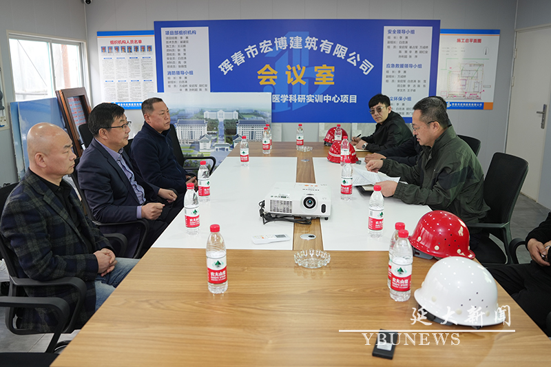 蔡奎龙走进施工现场,认真了解施工现场工地的安全生产管理情况,对现场安全生产隐患排查治理等情况进行了检查,仔细询问了施工方消防安全措施、文明施工、工程质量、安全生产等工作情况。蔡奎龙对施工总体情况给予了肯定,并对下一步施工工作提出了三点要求:一要进一步提高思想认识。要充分认识到医学科研实训中心建设工程对于提升永利官网医学教育水平、强化内涵建设所具有的重要意义,要从学校全局发展的高度认真落实相关工作,全力确保工程质量、工程进度和施工安全;二要进一步做好安全保障。要始终牢记安全责任重于泰山,要时刻绷紧安全生产这根弦,施工建设各单位要切实增强担当意识,确保安全责任到岗到人、落实到位,齐心协力共同把好安全关,全力保障项目高效、安全运转;三要进一步树立精品意识。要严格把控监管过程,规范施工程序,高标准、高要求、高质量推进项目建设,努力把永利官网医学科研实训中心建成延边州的标志性样板工程,为学校建设发展做出新的贡献。