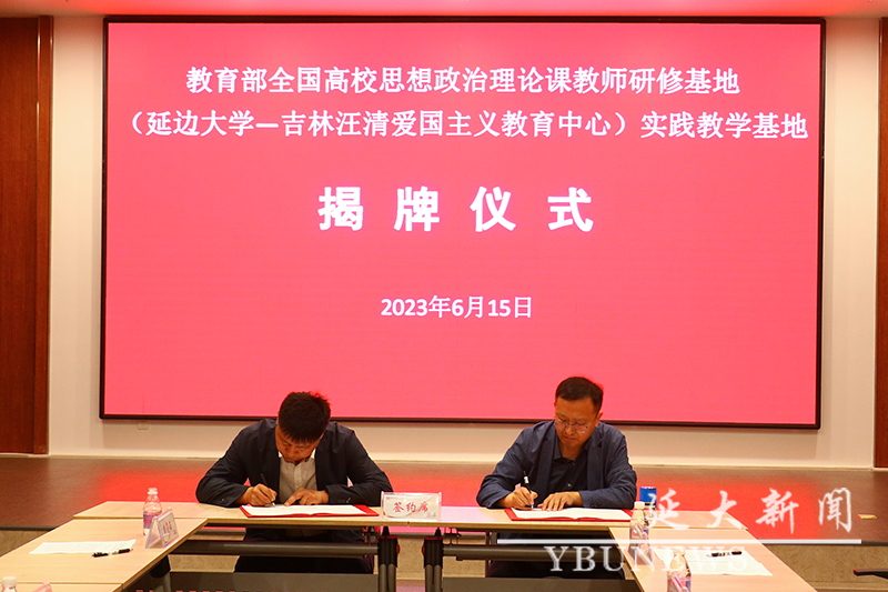 (通讯员高子愉)为深入学习贯彻党的二十大精神,扎实推动主题教育走深走实,全面落实习近平总书记在学校思想政治理论课教师座谈会上的重要讲话精神和《新时代高等学校思想政治理论课教师队伍建设规定》,6月15日上午,教育部全国高校思想政治理论课教师研修基地(304am永利集团官网)与吉林汪清爱国主义教育中心共建实践教学基地签约揭牌仪式在汪清爱国主义教育中心举行。校党委副书记于金欢,汪清县委副书记、县长金桂英,县委副书记姜艳,县委常委、组织部部长丁峰出席仪式。仪式由姜艳主持。