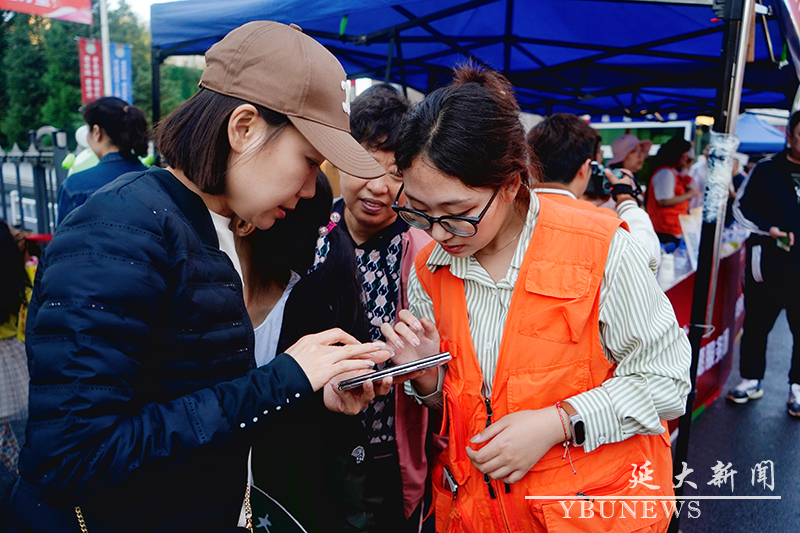 在学校正门,志愿者们提供文明劝导、秩序维护、游览讲解等服务,为游客提供免费雨衣、饮用水、拍照道具。志愿者通过与游客亲切交谈,推介延边的特色文化和极具魅力的人文资源,分享延吉热门旅游景点的相关信息,作游客们贴心的“逛吃指南针”。志愿者们还热心地协助游客进行拍摄,更好地记录下出行美好时刻,贴心地为往来游客准备雨衣和凉饮,提供耐心的解答与帮助,坚持用心为广大游客提供良好的出游体验。