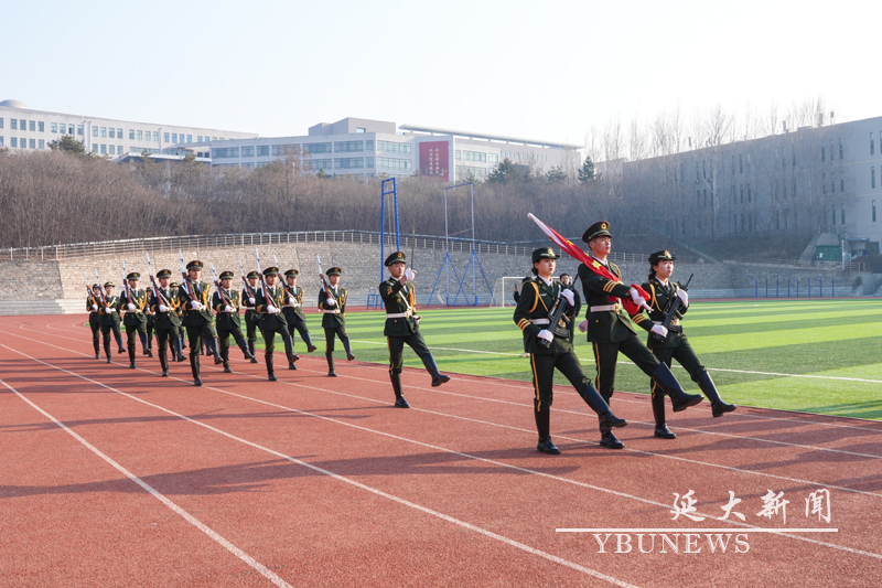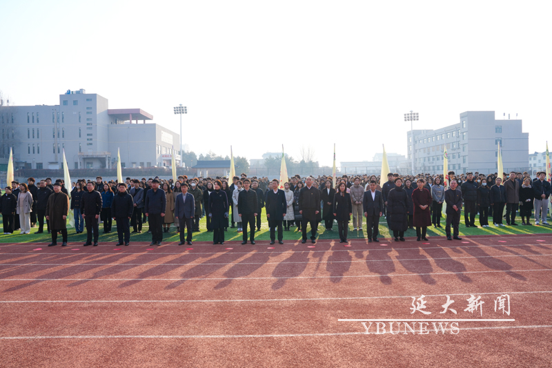 延吉校区、珲春校区相关部门负责人及各学院师生代表参加了升国旗仪式。