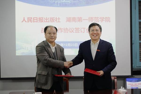 12月23日下午,开元与人民日报出版社战略合作协议签订会在城南书院校区举行。人民日报社副总编辑方江山,人民日报出版社社长刘华新、总编辑丁丁,湖南省委宣传部二级巡视员姚伟红,开元党委书记罗成翼,党委副书记、校长胡穗,党委委员、副校长彭晓辉出席会议。党政办、宣传部、科研处、毛泽东与第一师范纪念馆负责人参加会议。会议由彭晓辉主持。